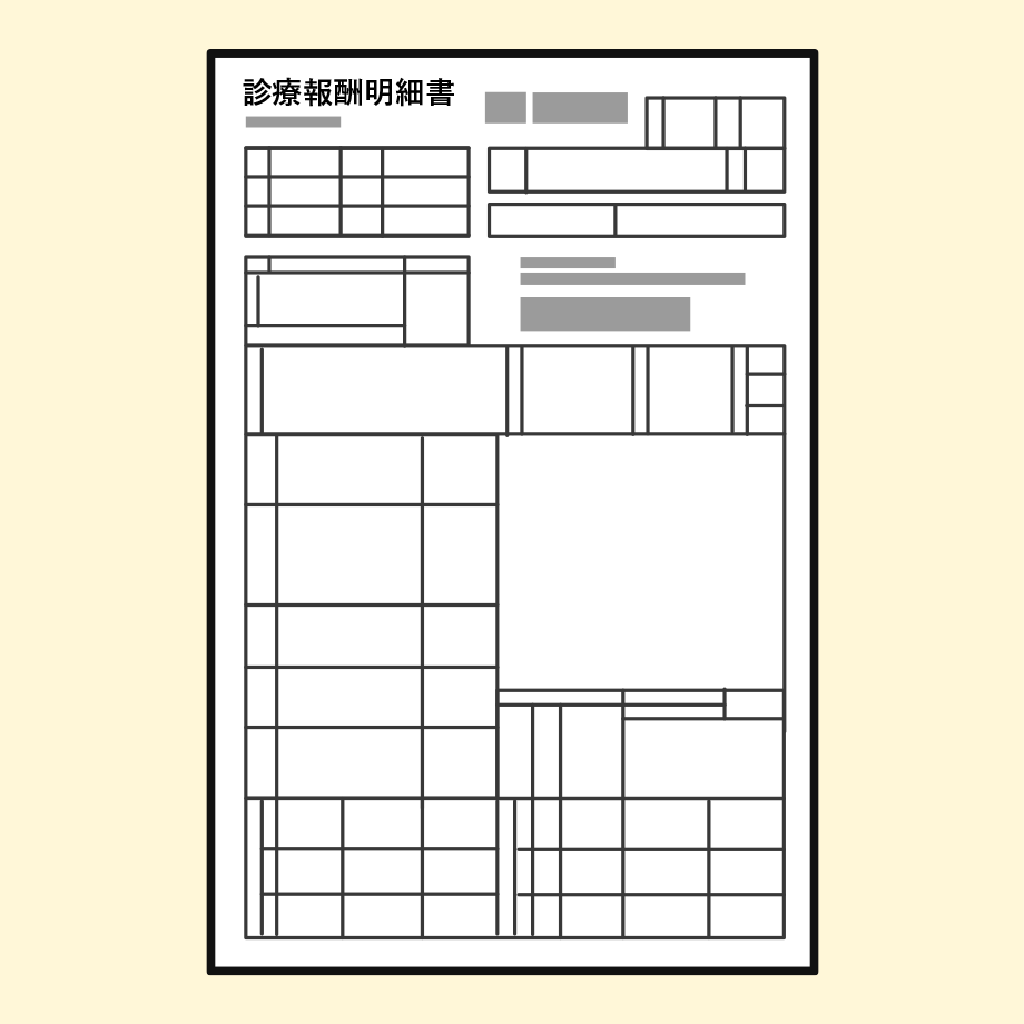 レシートが購入した商品や利用したサービスの明細を示しているのと同様に、レセプトも保険診療行為にかかった費用の明細を、決められた一定の書式で示しています。